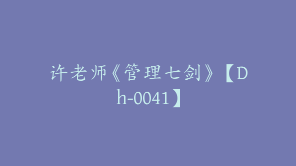 许老师《管理七剑》